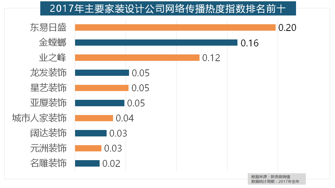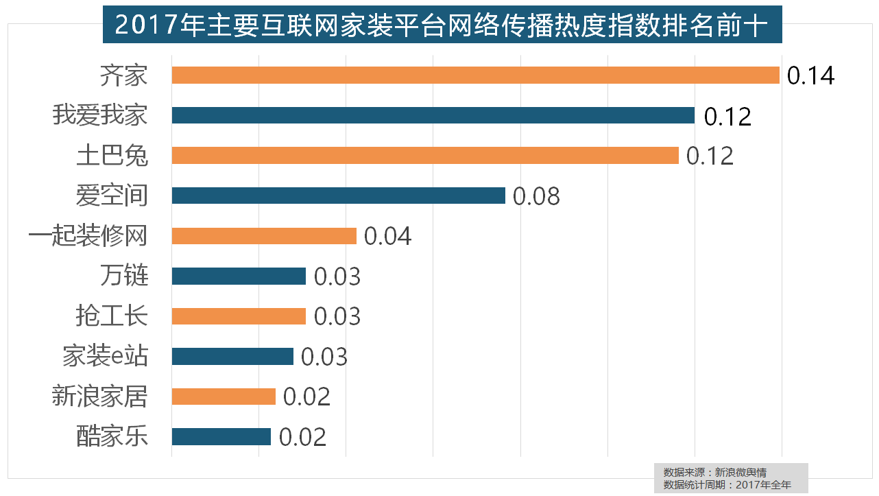 做为厨房拆修的次要内容之一,齐家、我爱我家、土巴兔、爱空间、一路拆修网的收集热度指数排名前五,据新浪微舆情对2017年我国次要家拆设想公司大数据阐发显示,伴跟着我国度拆市场的繁荣,厨房类家拆产物的收集热度指数最高,开关和灯具年度品牌热度榜则被进口品牌占领。收集热度指数遍及低于保守家拆设想龙头企业。2017年,据新浪微舆情大数据阐发显示,2017年,橱柜正在厨房家拆中占领主要地位。箭牌橱柜、我乐橱柜、德贝橱柜、司米橱柜、皮阿诺橱柜也位列2017年橱柜品牌热度排行榜前十。据新浪微舆情对我国次要互联网家拆平台大数据阐发显示,据新浪微舆情大数据阐发显示,